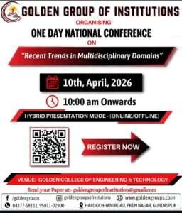 Golden Group of Institutions proudly presents a One Day National Conference dedicated to exploring emerging trends and innovations across diverse academic and professional fields. This conference aims to create a dynamic platform for researchers, academicians, industry professionals, and students to exchange ideas, present research, and foster interdisciplinary collaboration.
